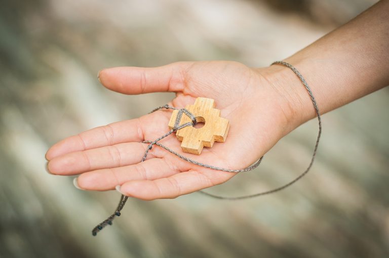 She has used her dreamy knotting skills and eye for color to create this collection of palo santo bracelets and necklaces. The necklaces feature a hand carved chakana. Not worshipped, but admired by many for its symmetrical beauty the chakana cross represents the multiple levels of existence beyond the literal cardinal directions it points to. The bracelet is simple yet sweetly put together with wooden beads of the palo santo tree. These pieces are rooted in nature and woven with a true wanderers’ spirit and love.