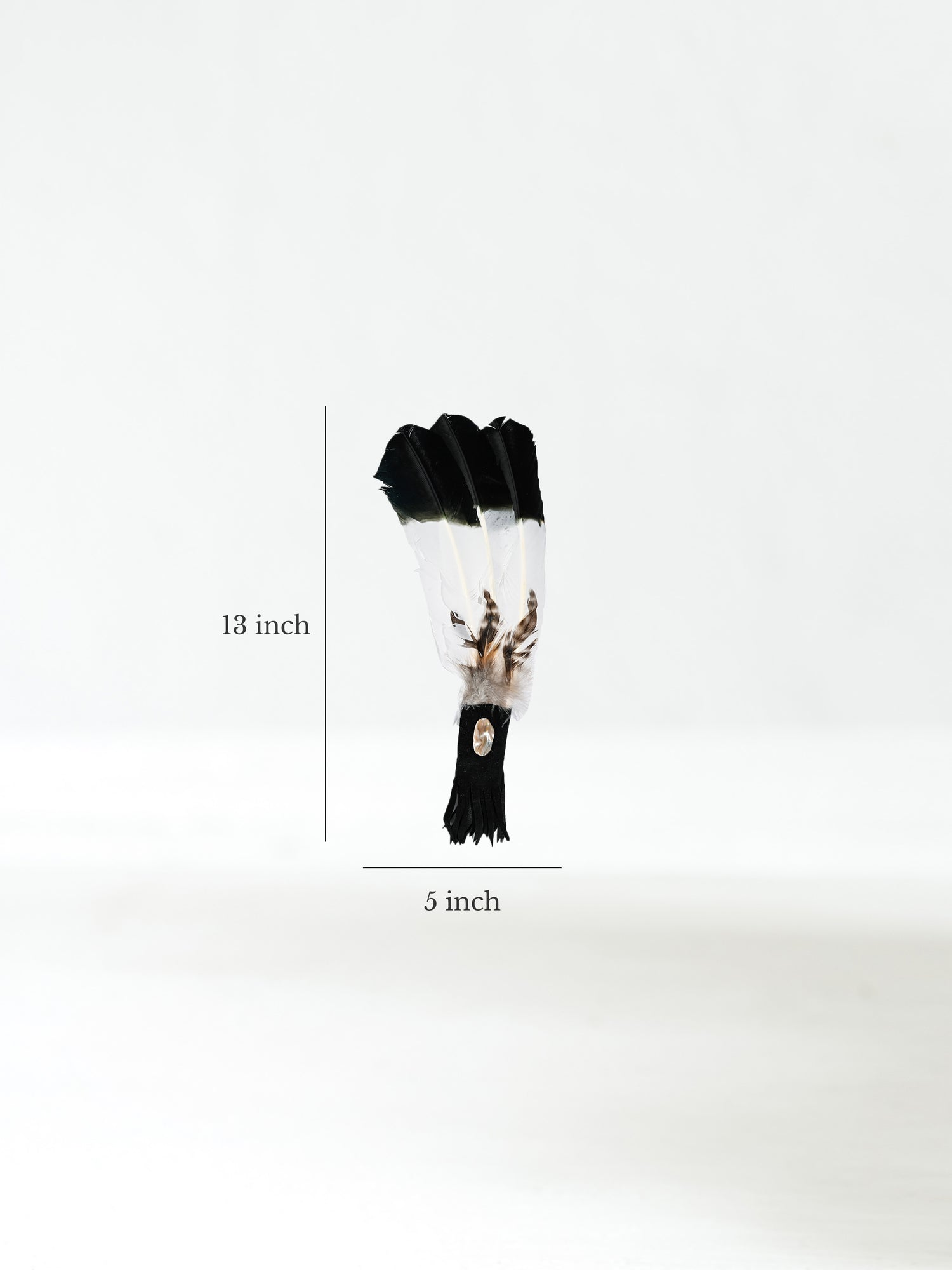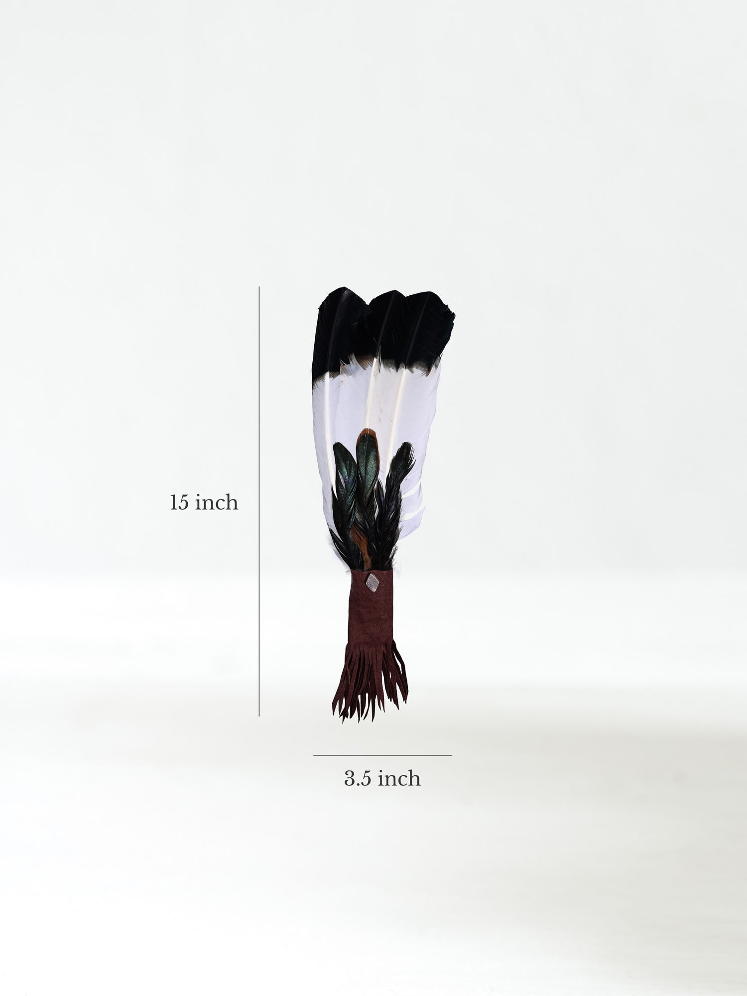 Black-tipped feathers. Color of leather may slightly vary. Due to natural materials, feather shape display may be slightly different from the picture. No birds are killed in the making of these smudge feathers.