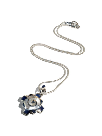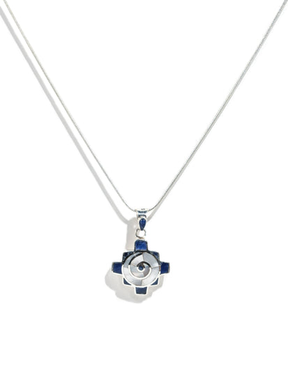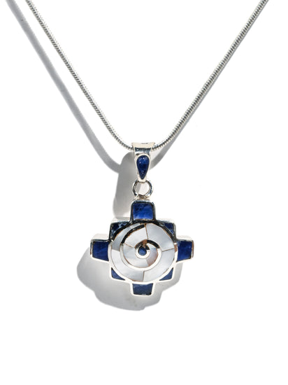 Peruvian Chakana Spiral Pendant Necklace - 950 Sterling Silver Shell Inlay | j0128 | Shamans Market Skip to content