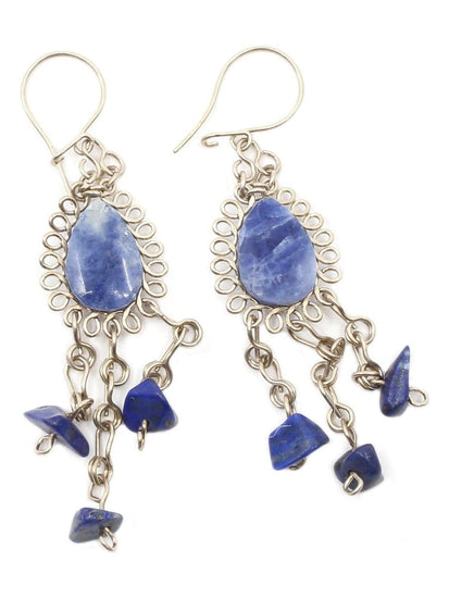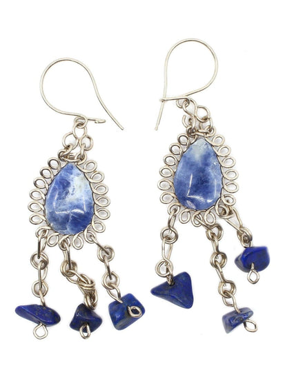 Alpaca Silver Wire Pierced Earrings Lapis Lazuli Teardrop and Stones | j0165 | Shamans Market Skip to content