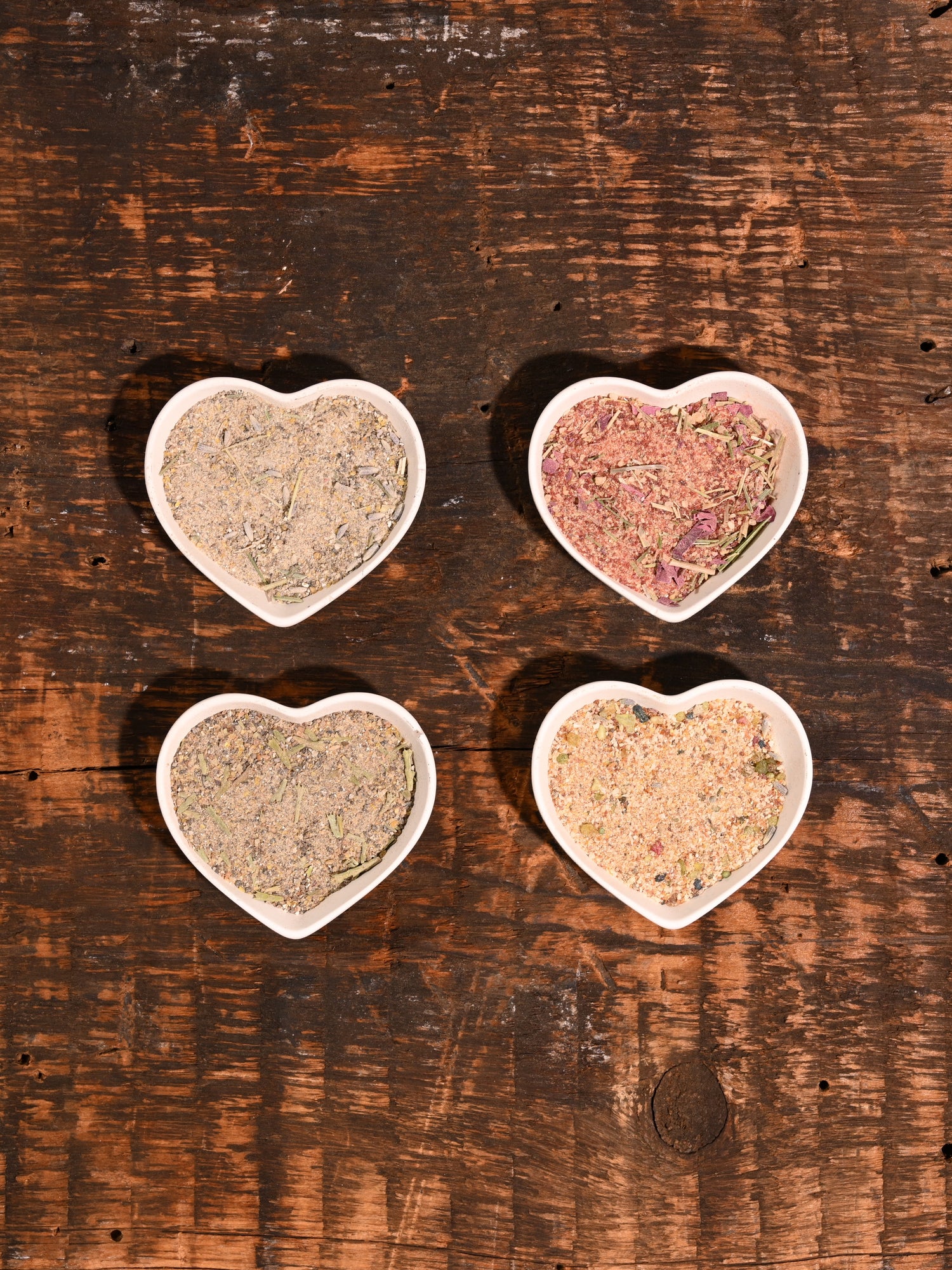 Each artisanal blend is carefully crafted with respect to its intention, creating a beautiful aesthetic and scent profile. Our offering mixes feature a variety of our resin powder, plants, dried herbs, and flowers. They feature zero to minimal resin pieces to allow a cohesive burn and scent. Our blends are made by pestling resins, drying herbs and flowers (from local gardens when seasonally available), separating, mincing, cutting, and formulating, including dried plants we sell individually, and weaving resins and nature together. The process itself is filled with love, spirited energy, and meditation by the maker.