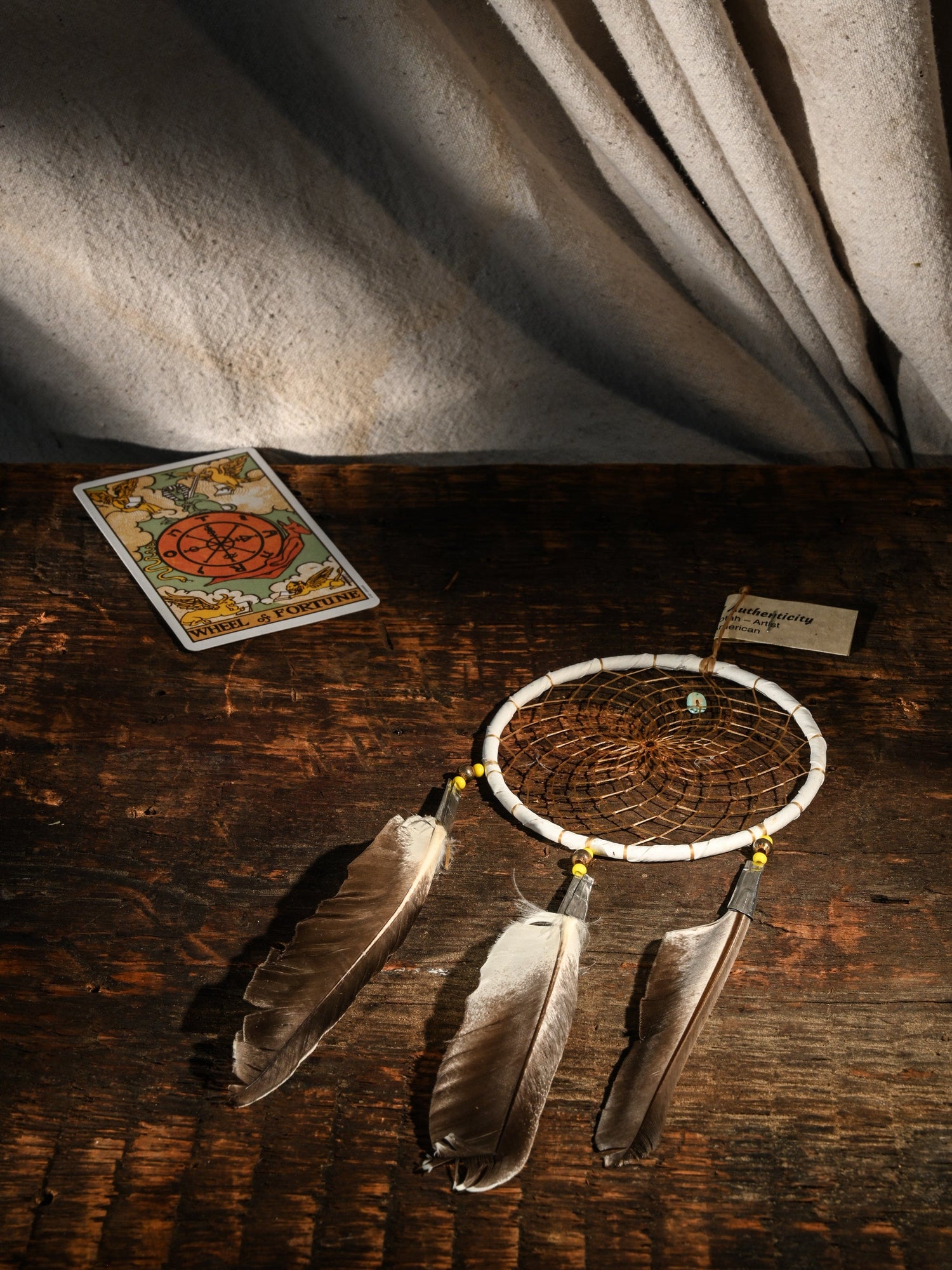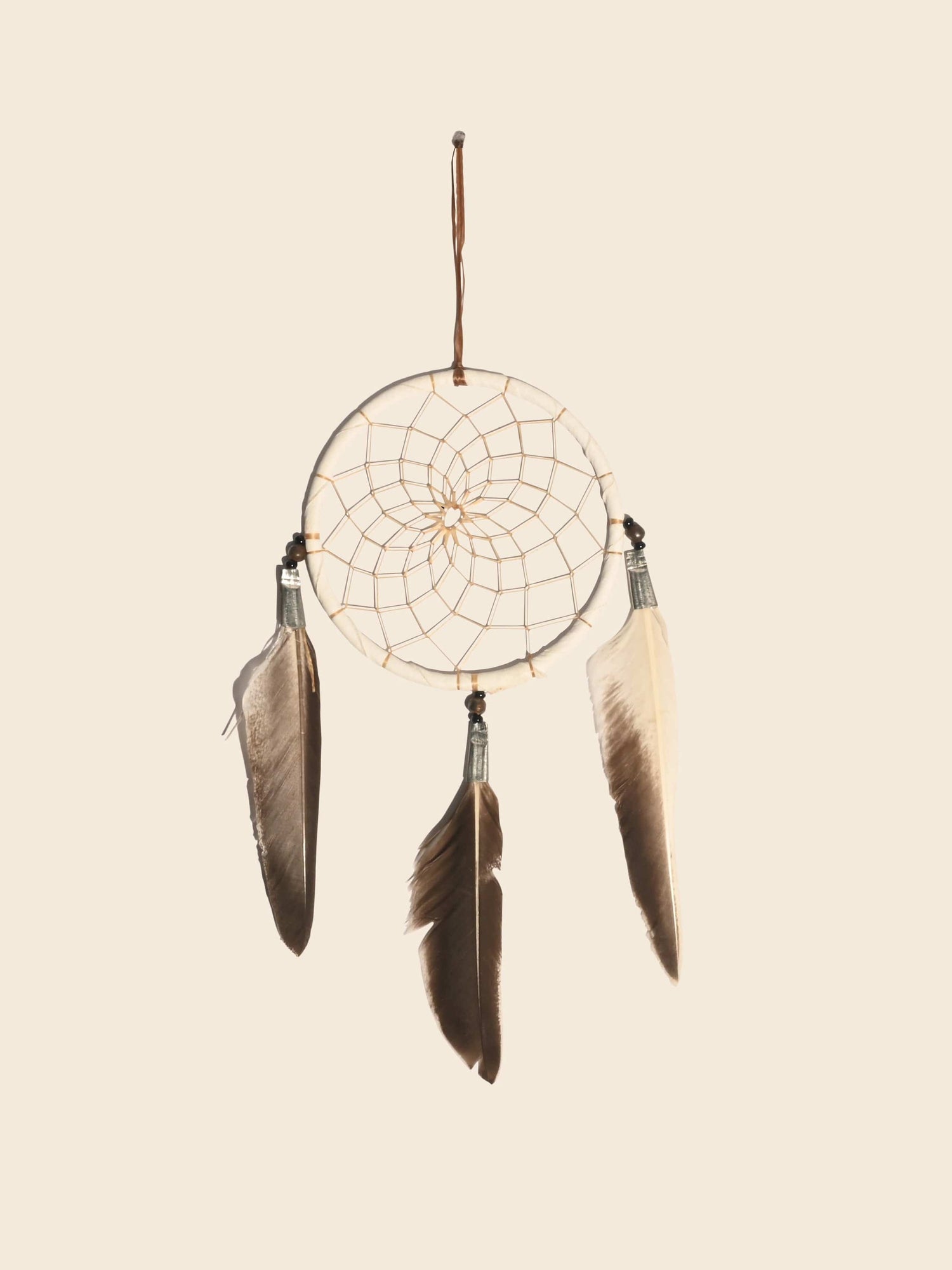 Ojibwa legends speak to us of the dreamcatcher. It is believed that each carefully woven web will catch your dreams in the night air. The bad spirit dreams will become entangled in the web and disappear in the new day. The good spirit dreams will always find their way through the center opening and gently float down the sacred feather to bless the dreamer with peaceful dreams.
