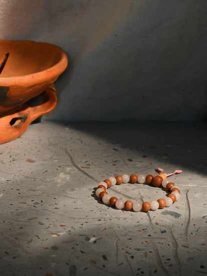 Rose Quartz & Sandalwood Wrist Mala | j0549 | Shamans Market Skip to content