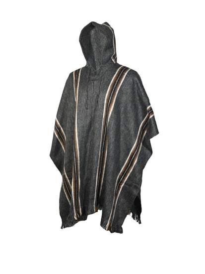 Bolivian "Illimani" Poncho with Hood | txp0117-M-Light-Gray | Shamans Market Skip to content