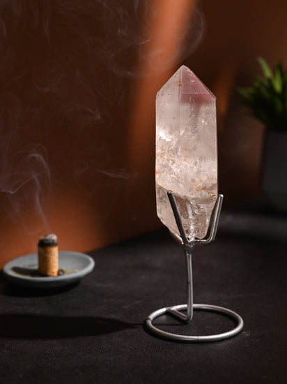 Important Notes: Variant B has a broken termination and self-healed, this means the crystal broke during growth and then continued to grow. Variants B & C are sold with a custom metal base to display your crystal.