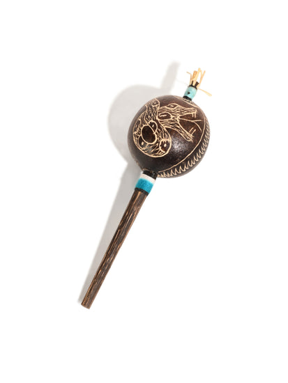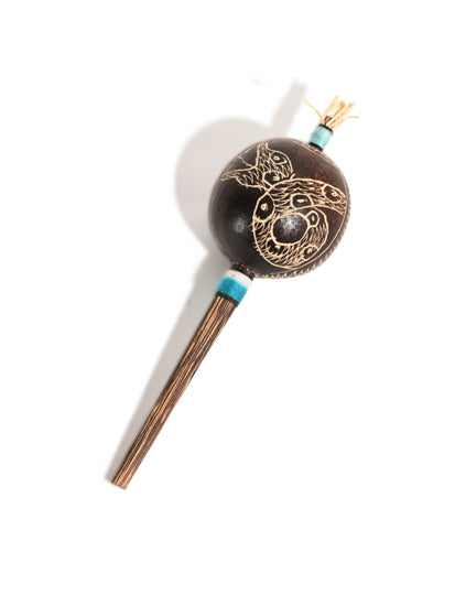 Rattles produce a sound when shaken. The sound may vary depending on the size of the rattle and what or how much material the rattle is filled with. Traditional rattles are made of objects of the Earth and typically have beautiful imagery or unique attachments carved into or on them. These features help to keep the connection to Spirit at the forefront of your consciousness when you are using your rattle. Shamans use the sound of a rattle to enter trance states for healing and accessing other realms to receive information for causing shifts in their own and other peoples’ energy fields.