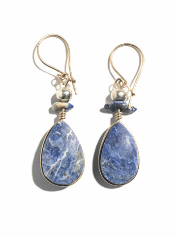 Alpaca Silver Wire Pierced Earrings Lapis Lazuli - 1.5 in