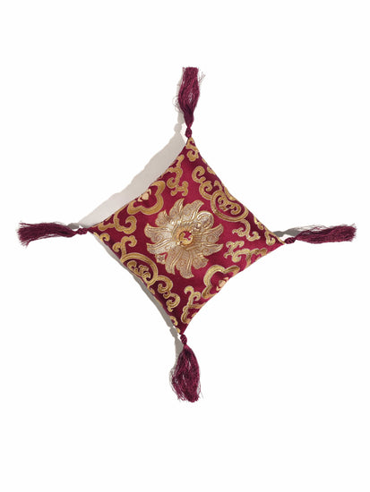 Complement your singing bowl and meditation practice with this elegant brocade bowl cushion. The pillow can also be used for the display of statues, jewelry and other objects of beauty. Durable brocade is a mix of silk and synthetic fibers.
