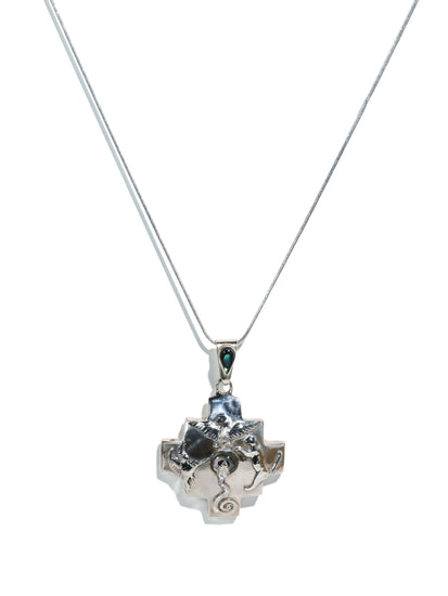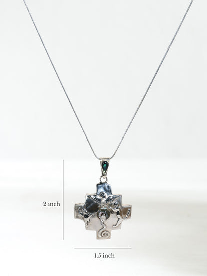 The Chakana (or Inca Cross) symbolizes for Inca mythology what is known in other mythologies as the World Tree, Tree of Life and so on. The stepped cross is made up of an equal-armed cross indicating the cardinal points of the compass and a superimposed square. The square represents the other two levels of existence. The three levels of existence are Hana Pacha (the upper world inhabited by the superior gods), Kay Pacha, (the world of our everyday existence) and Ucu or Urin Pacha (the underworld inhabited by spirits of the dead, the ancestors, their overlords and various deities having close contact to the Earth plane). The hole through the centre of the cross is the Axis by means of which the shaman transits the cosmic vault to the other levels. It also represents Cuzco, the center of the Incan empire, and the Southern Cross constellation. The cross has 12 points and legend has it these points represent the following sayings, affirmations and life points: I live, I work, I love; The underworld, The current world, The upper world; the cougar, the eagle, the snake. The four flat sides represent the elements: Water, Air, Earth, Fire.