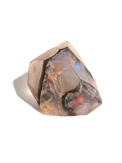This 'semi-precious' soap, designed to look like moonstone, has a collectible quality to it and makes a unique decorative accent in kitchen or bath. But it's when it is used that it really shines. It looks like crystal, especially when wet, as the water lights up its brilliant colors. As you use it, the soap slowly weathers away like a stream stone in geologic time, exposing even more beauty within. Balmy eve, cool tropical fragrance. USA Made. No animal testing. Vegetable base. Great gift idea.
