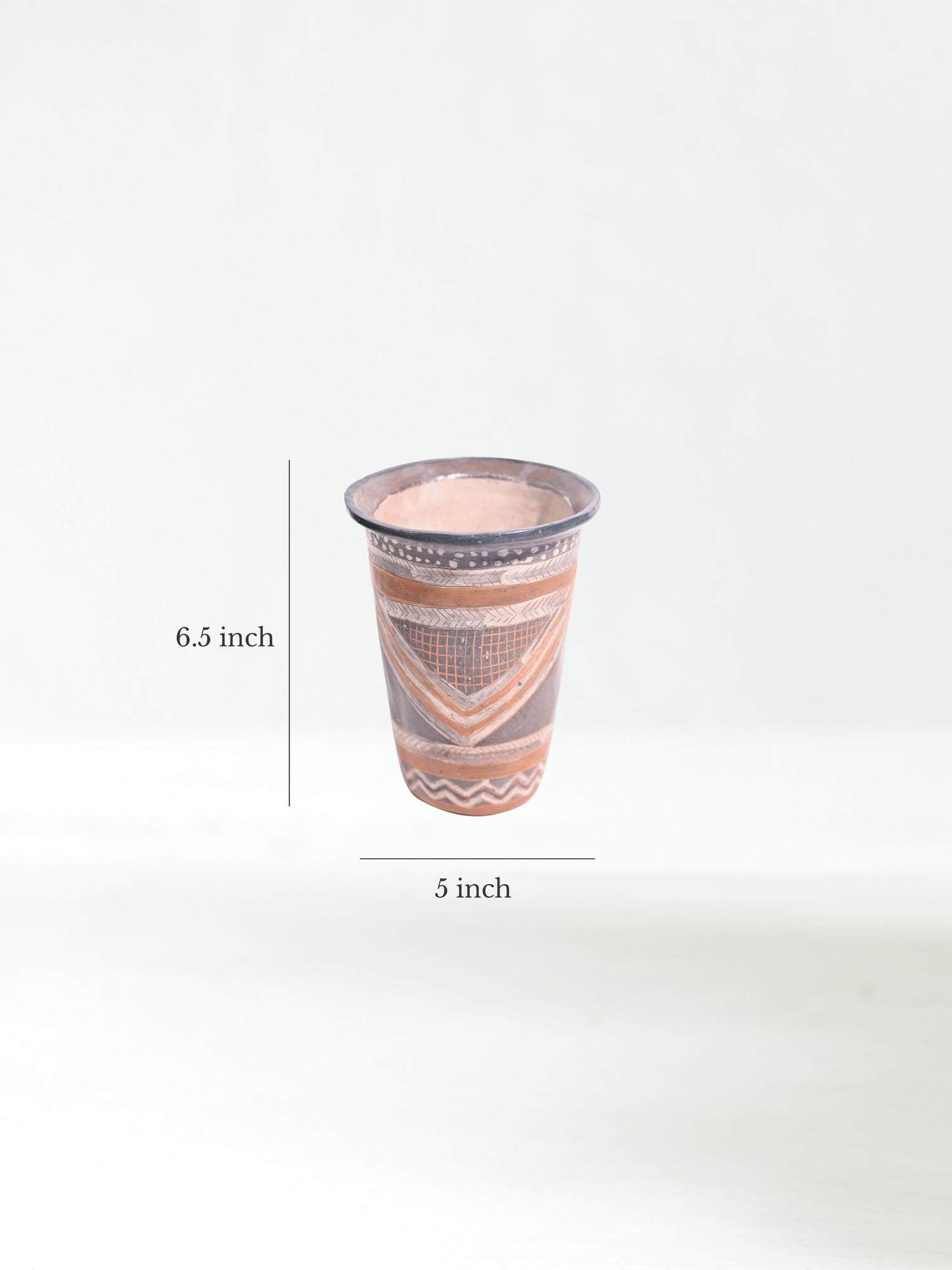 Exquisitely hand-crafted replica of an Inca ceremonial glass made by the artist Jose Vitancio. Incision details along the entire body of this cone shaped cup. Formerly used to drink chicha, corn beer.