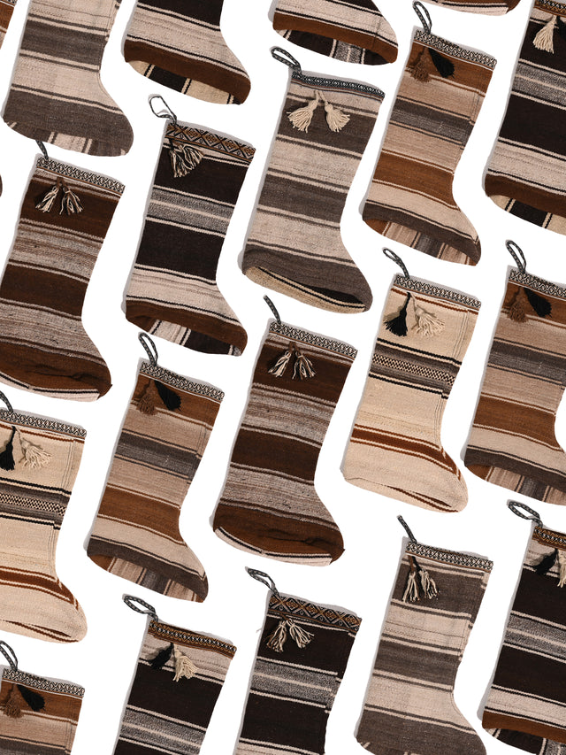 Perfect for stuffing with little treasures, this stocking is a holiday heirloom in the making. Made from Vintage Mestana cloths upcycled to create these one-of-a-kind stockings.