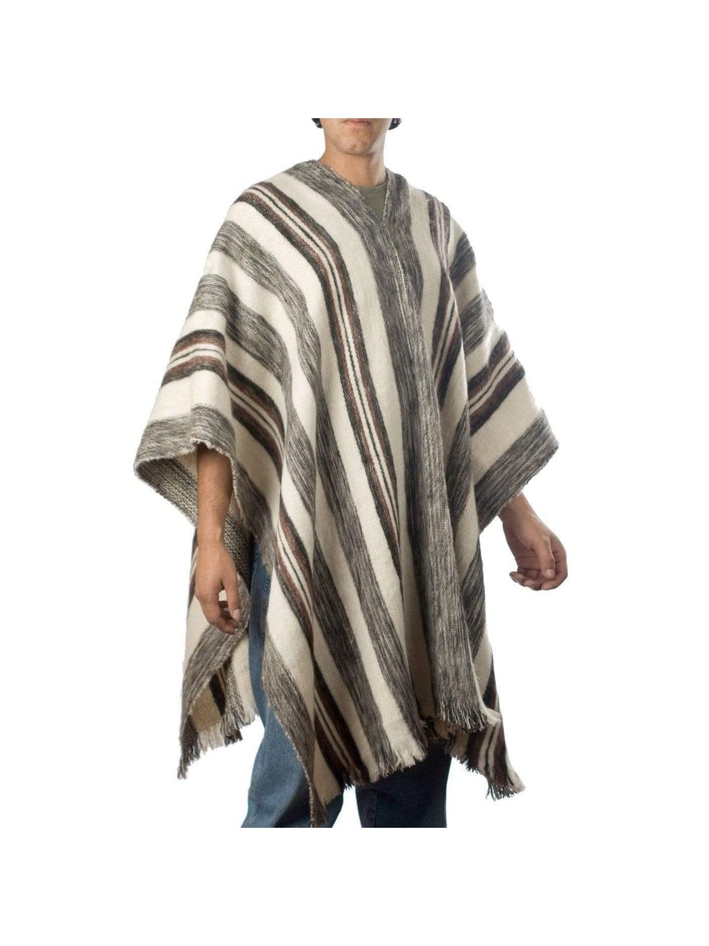 Named for a small town in Bolivia, home to the world's largest salt flats. For an informal occasion or simply to look original, this unisex 100% sheep's wool poncho is ideal. The natural material is thick and warm, and its striped design is inspired by Andean traditions. Handmade in Bolivia. Choice of Stripe Colors. See how we measure our ponchos in the description below.
