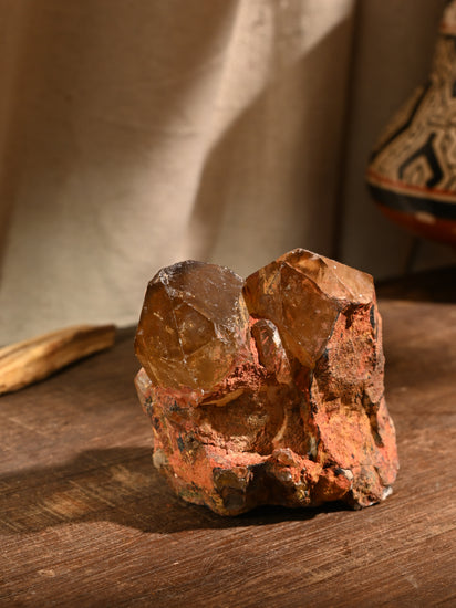 In Hinduism, Kundalini is a form of divine feminine energy believed to be located at the base of the spine, in the muladhara. Carrying the power of the Sun, Kundalini Citrine is warm and comforting, energizing and life giving. These crystals have a deep, smoky gold color that encourages fullness of life, fresh beginnings and new pursuits.