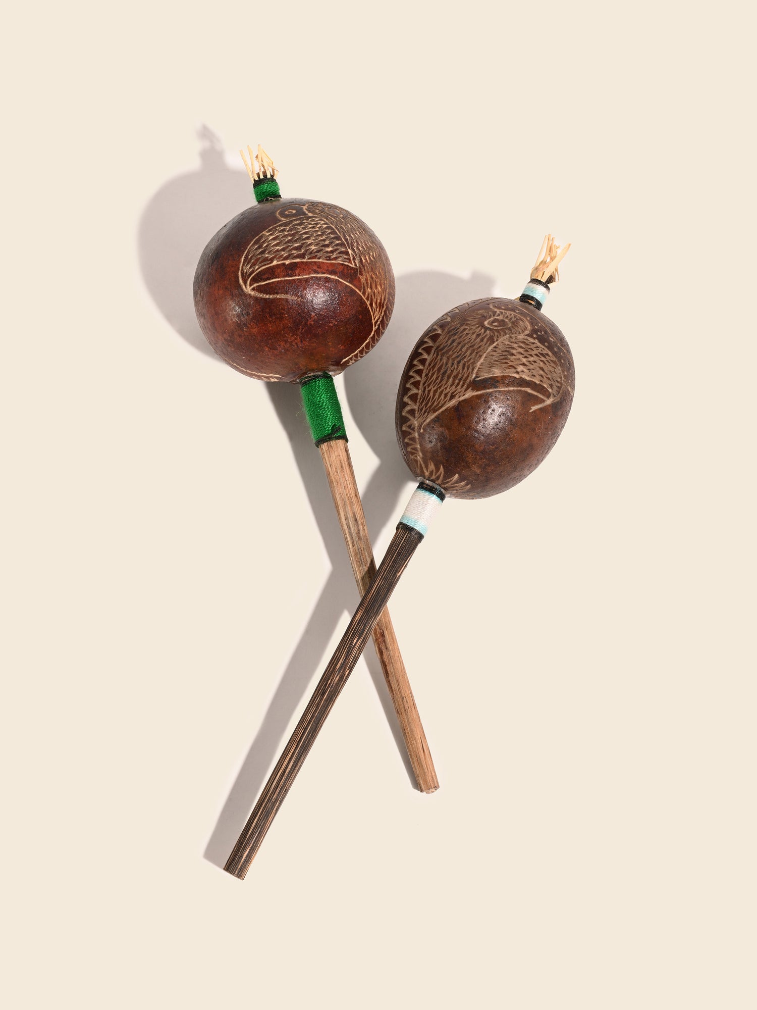 Peruvian Amazon Gourd Rattle - Eagle and Condor - Small is backordered and will ship as soon as it is back in stock.