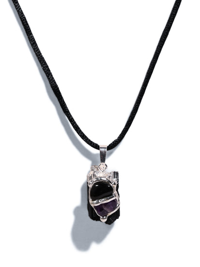 This pendant is called Protection (Shield). The Black Tourmaline stone deflects negativity instead of absorbing it. The Amethyst initiates greater wisdom and also emits strong protective energies. The Black Obsidian teaches us to find light in the darkness and release anything of lesser vibration.