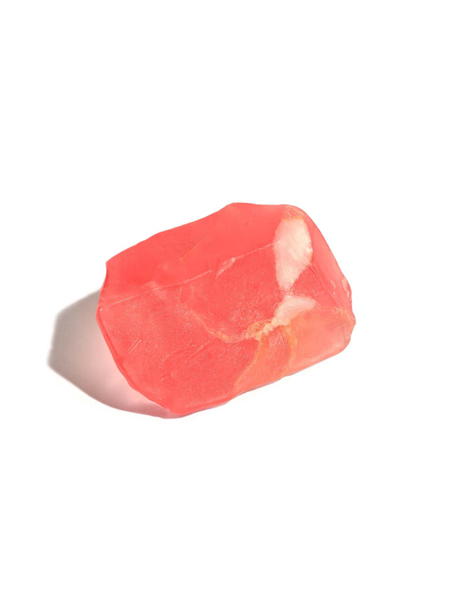 Natural soap created as replica of earth's precious stone. Made from mild, extra long-lasting vegetable glycerin. Bar lights up under water, and over many uses, slowly weathers away in your hands like a stream stone in geologic time.