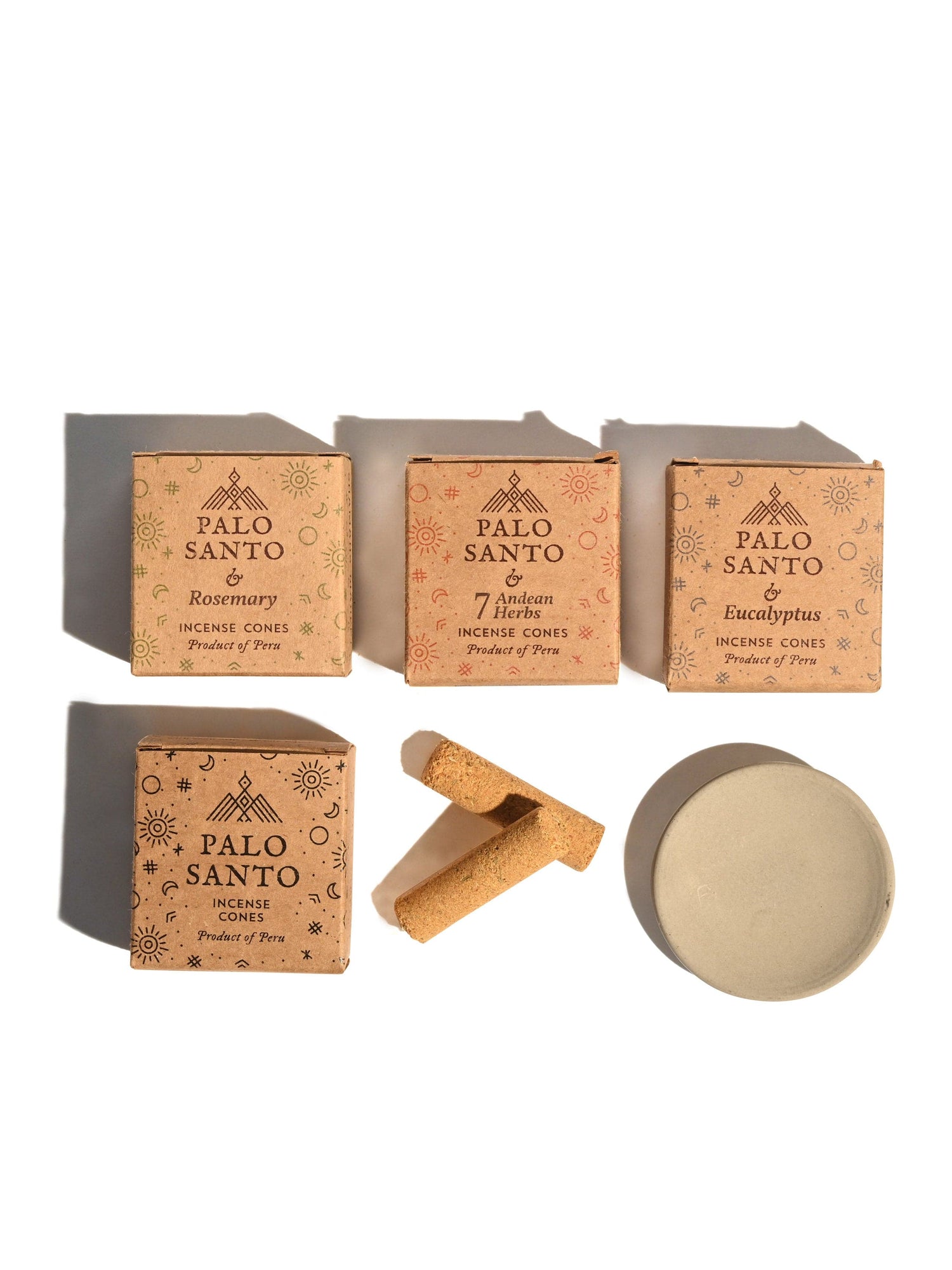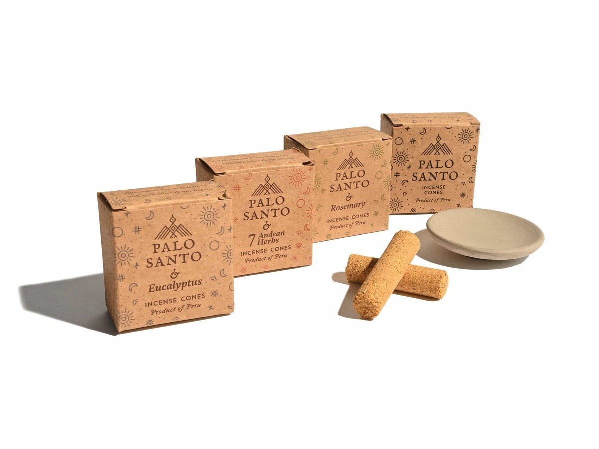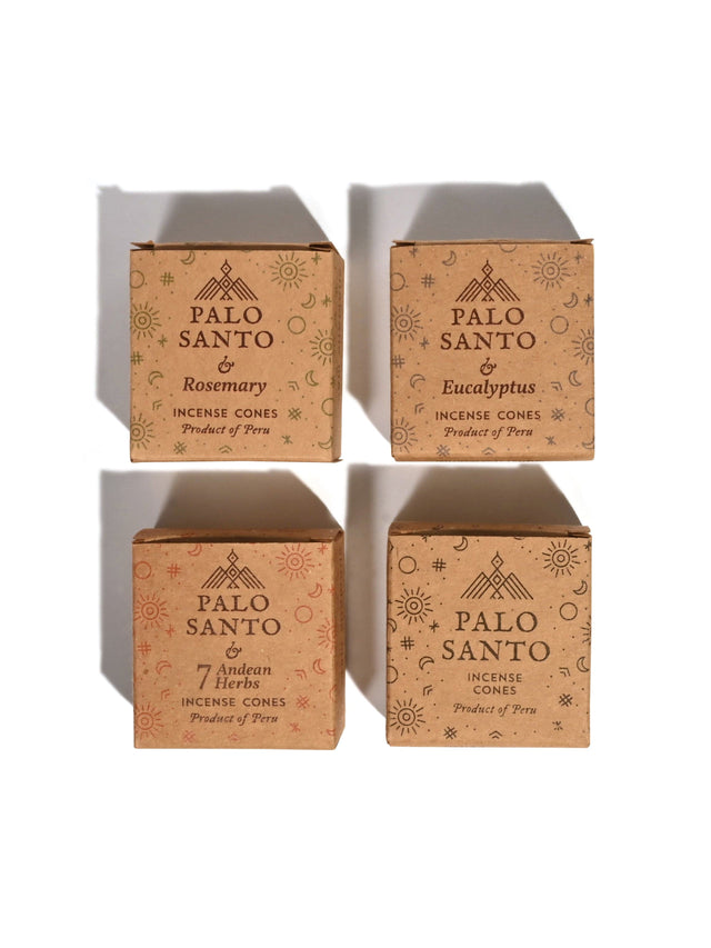 To further our efforts in protecting the Palo Santo tree, these cones include Palo Santo and other herbs. Mixing Palo Santo with other Peruvian herbs helps to reduce the amount of Palo Santo being used.