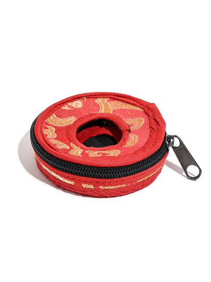 Tingsha Cover Features:Colorful Tibetan Brocade SilkVarious Colors with complementary color pipingZipper Closure3 inch diameter x 1.5 in HFelt padding