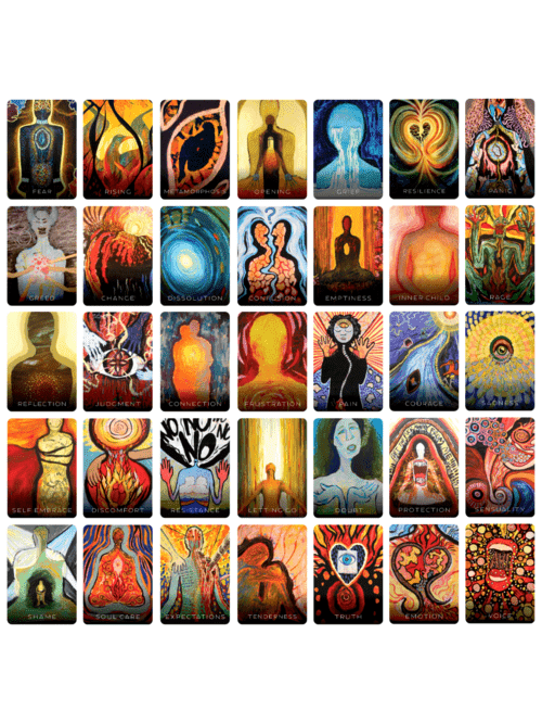 “This project was truly a labor of love for me and Jessica. Our mutual love and devotion of sharing the profound work of shadow transformation with others fueled the inner fire to birth this oracle, and more to come.” —Jenny Hahn, artist